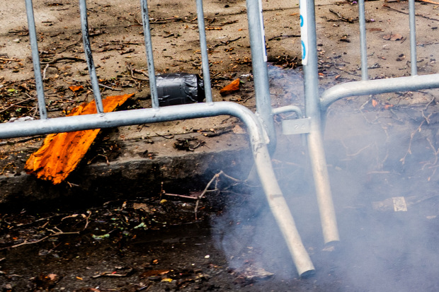 The device was one of two that were thrown during the protests, which were led by two opposing groups, according to police. The second device was still being examined, Tisch said.
