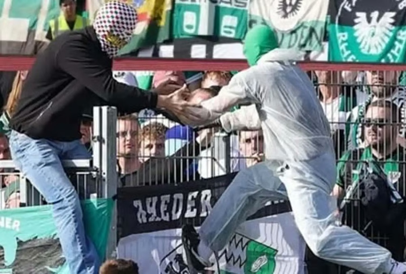 A masked fan unplugged a VAR monitor during a German second division match on Sunday in an audacious act of sabotage that left the referee looking at a blank screen when he was called to review a potential penalty.