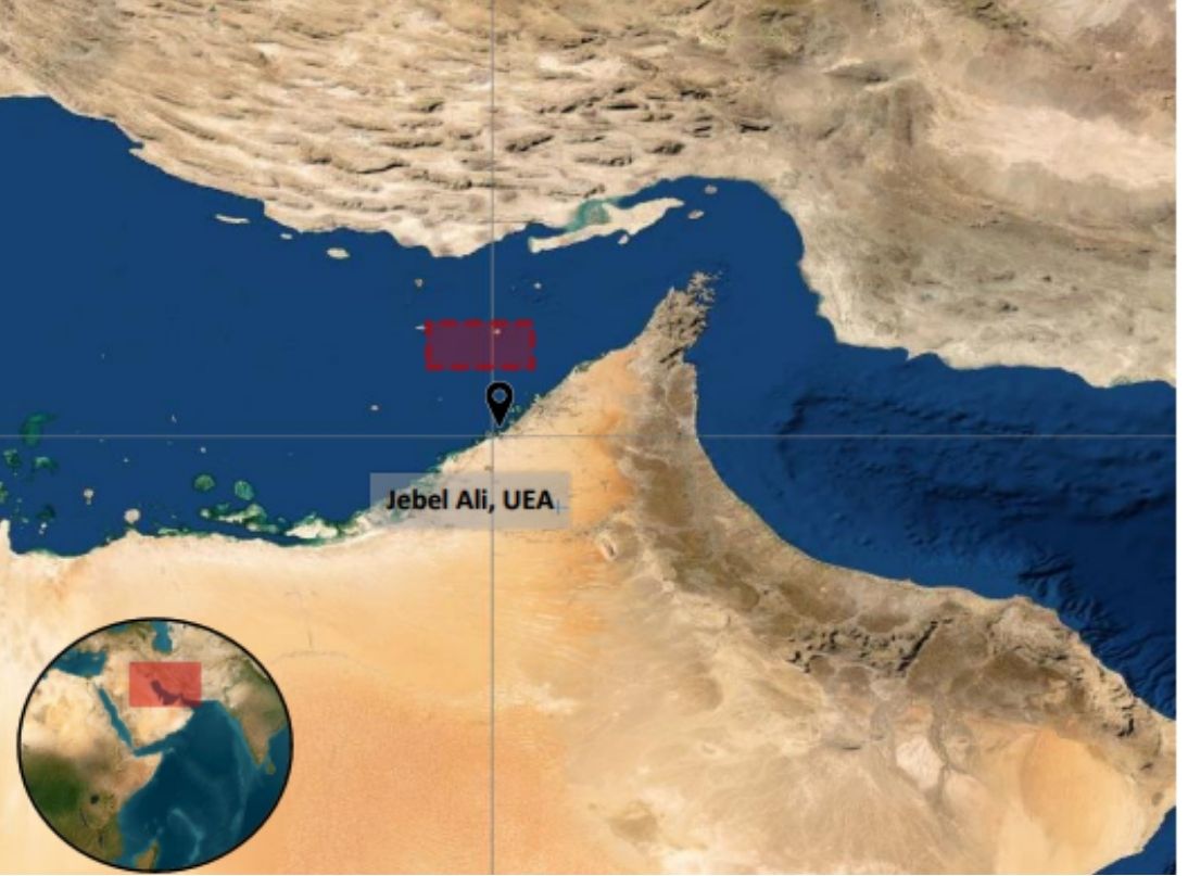 An unidentified projectile struck a container ship, causing a small fire, 35 nautical miles north of Jebel Ali in the United Arab Emirates, the United Kingdom Maritime Trade Operations (UKMTO) said on Thursday.