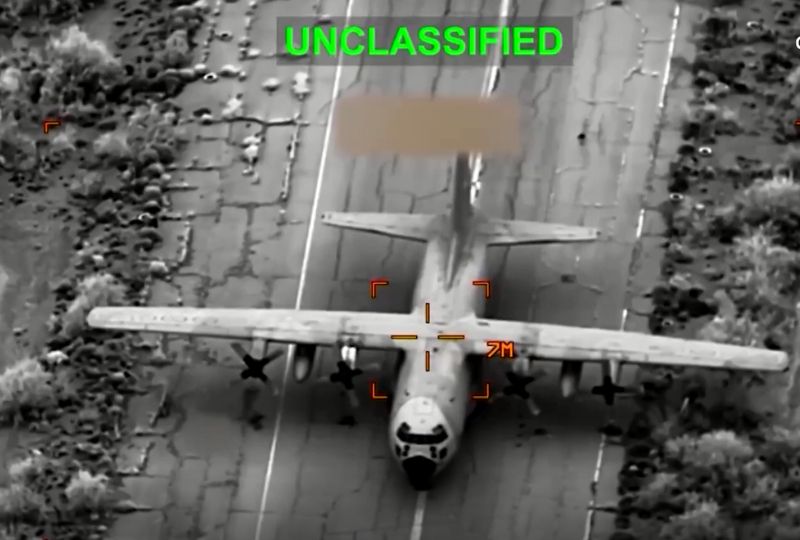 Reuters verified the location of the footage from road layout, building structures, road lines and vegetation which matched satellite images. Reuters verified that the aircraft were a C-130 Hercules, a P-3 Orion and an Ilyushin II-76 as seen on file images. No older version of the video was found posted online before March 11.