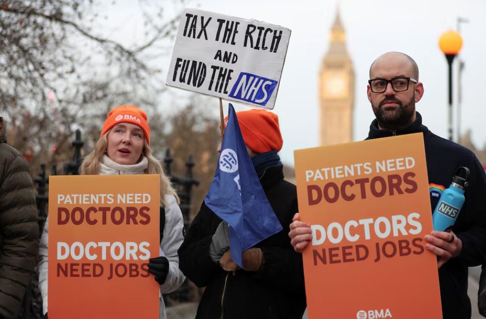 Resident doctors in England will strike for six days in April after rejecting a government pay offer, the British Medical Association said yesterday, escalating a long-running dispute over pay and staffing pressures in the National Health Service.