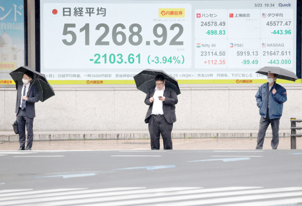 MAJOR stock indexes eased yesterday as Brent oil futures rose above $105 a barrel, with Iran’s denial of any talks with the US dimming hopes of a quick resolution to the nearly one-month-long Middle East war.