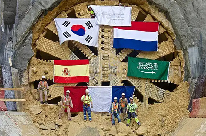 Of the three consortia (FAST, BACS and ANM) that have participated in the development of the Riyadh Metro network, the FAST consortium, led by FCC, was the first to bring a 9.8-metre-diameter tunnel boring machine to Riyadh.