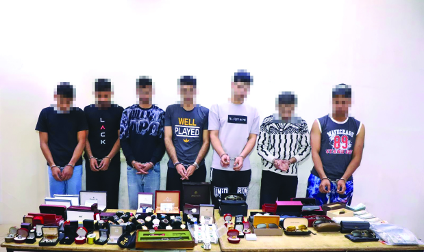 Seven Bahrainis aged between 18 and 23 have been arrested for allegedly stealing gold jewellery, watches, and other valuable items worth more than BD800,000.