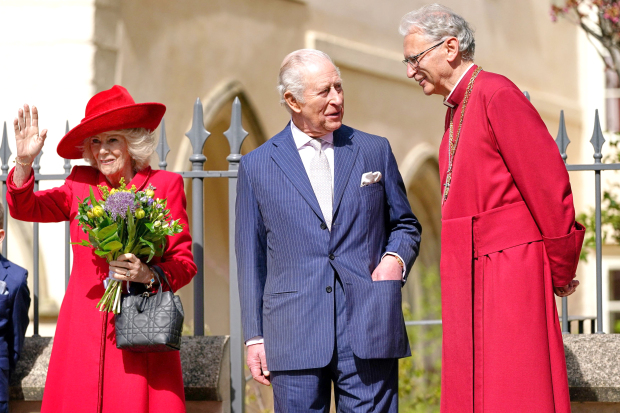 The Dean of Windsor, Christopher Cocksworth, greeted Charles and Camilla, who wore a red hat and coat, as they arrived for the Easter Matins, which was also attended by Prince Edward and Anne, the Princess Royal, and other royals.