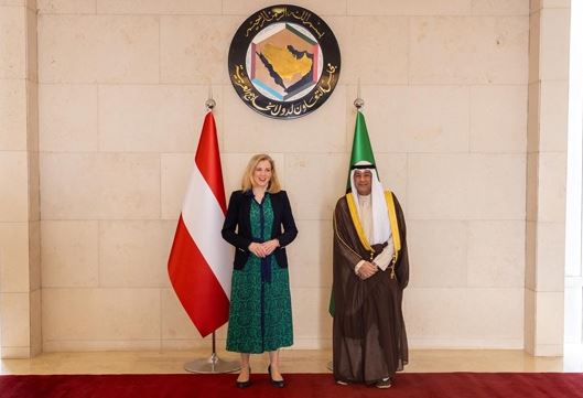 The meeting also featured a review of GCC-Austrian ties and means to further develop them to achieve mutual interests, as well as an exploration of GCC-European Unio (EU) relations and the importance of solidifying these ties. Additionally, they followed up on the latest developments regarding the Joint Work Programme (2022–2027) and exchanged views on the most recent regional and international developments.