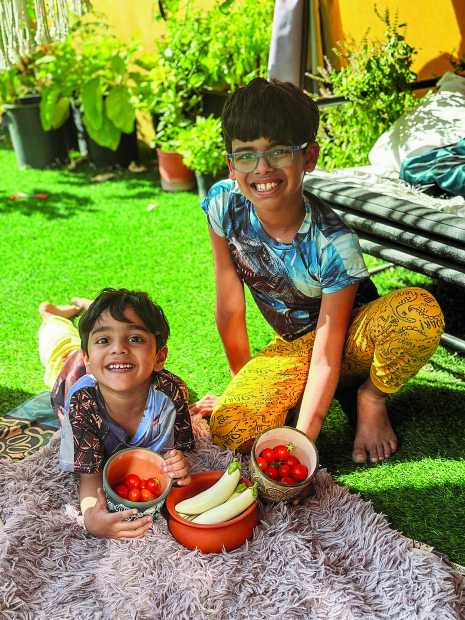The Indian expatriate also grows vegetables such as tomatoes and brinjals, and shares her love for green spaces with her sons, Atharv, eight, and Parth, four, who both attend Sacred Heart School in Isa Town. Like Parvathi, Shabastha Sirshad from Budaiya also grows seasonal vegetables like moringa, curry leaves, brinjals, coriander and green chillies.