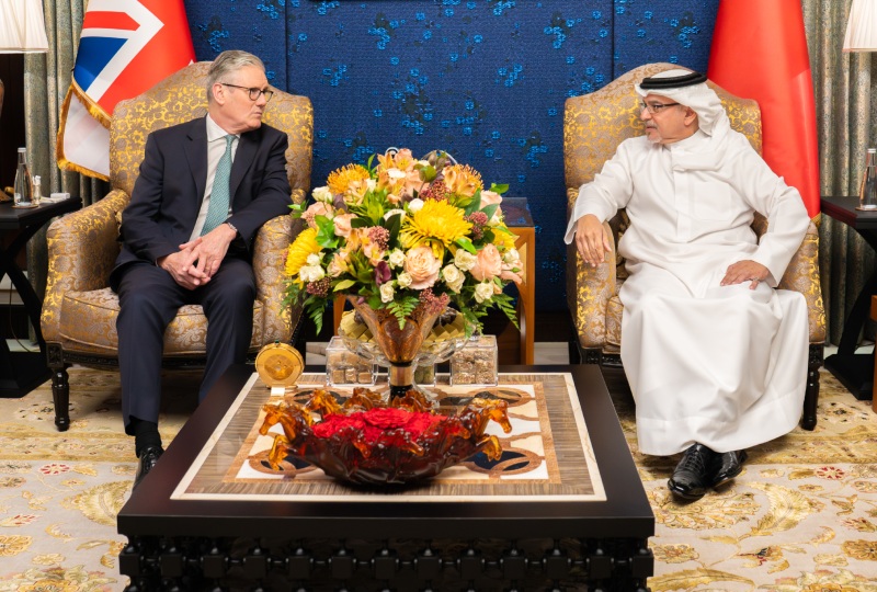 His Royal Highness Prince Salman bin Hamad Al Khalifa, the Crown Prince and Prime Minister, today met with the Rt Hon Sir Keir Starmer MP, the Prime Minister of the United Kingdom of Great Britain and Northern Ireland, at Sakhir Palace.