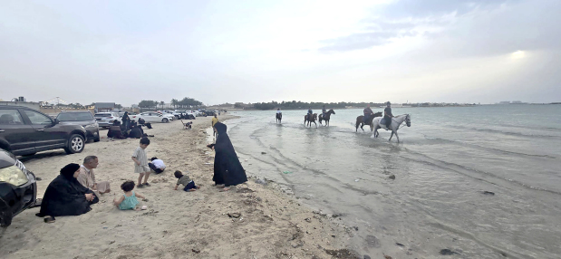 Our sister paper Akhbar Al Khaleej observed families bringing their children to the shores to enjoy the seaside atmosphere, alongside recreational activities such as horse riding, particularly at sunset yesterday, in a vibrant scene typical of coastal areas.