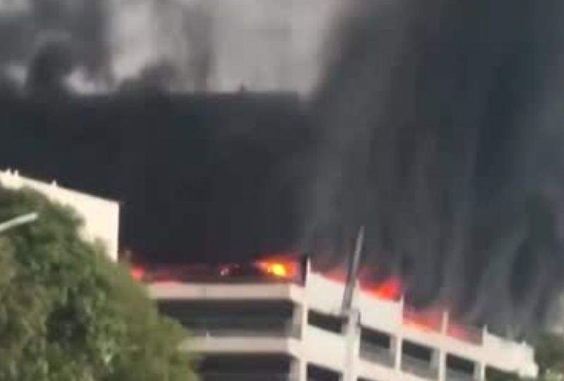 Videos showed the blaze sending thick black smoke billowing into the sky, with flames stretching across a long section of a multi-story building, with fire trucks and police deployed to the scene.