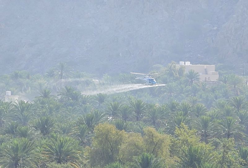 The aerial spraying campaign to combat the palm dubas bug (locally known as "Al Mataq") was launched today in the South Al Batinah Governorate.