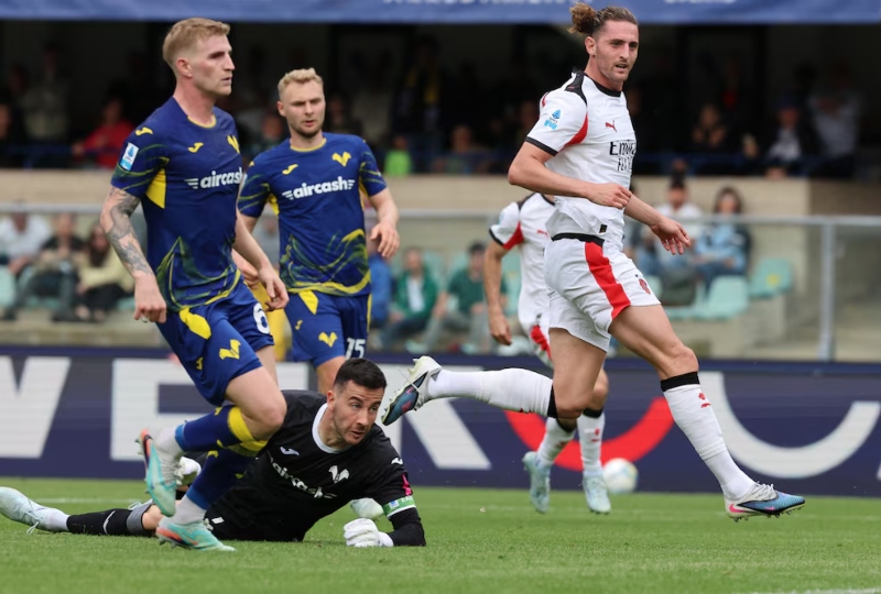 Verona had a chance to level on the stroke of halftime, Rafik Belghali beating the offside trap and through one-on-one with the keeper, but could not find a way past Milan's Mike Maignan.