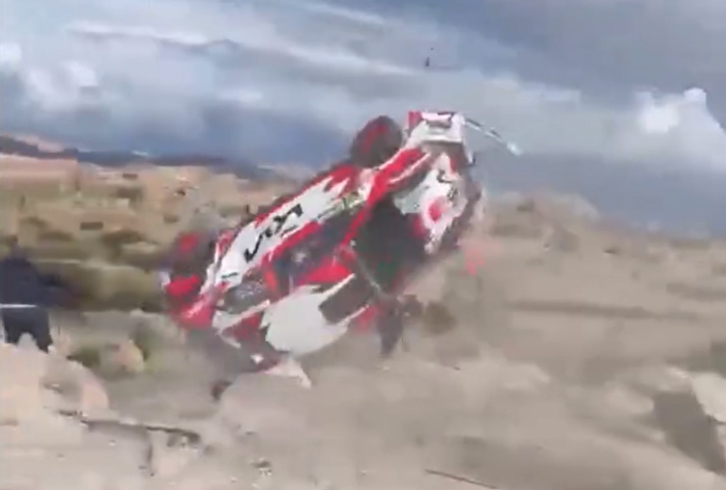 Video footage showed the vehicle clipping an embankment before rolling into the spectator zone. Driver Didier Arias and co-driver Hector Nunez escaped without serious injury, according to media reports.