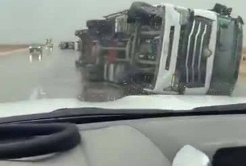 Severe winds affecting parts of Saudi Arabia on Sunday knocked down several electricity poles and walls, and flipped trucks over.