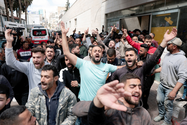 The Palestinian Red Crescent Society said two Palestinians were killed and four others were wounded by Israeli settler gunfire in Al Mughayyir village near Ramallah. The Palestinian health ministry said the two killed were aged 14 and 32.