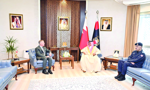 Interior Minister General Shaikh Rashid bin Abdulla Al Khalifa received retired Air Marshal Martin Sampson, Executive Director of the International Institute for Strategic Studies (IISS) Middle East, in the presence of Major-General Shaikh Hamad bin Mohammed Al Khalifa, Deputy Chief of Public Security.