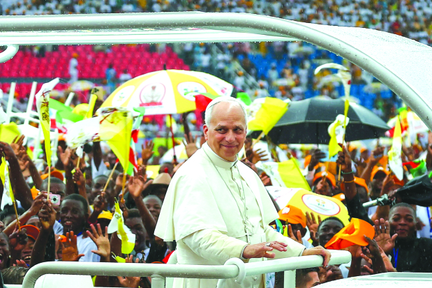 Pope Leo’s four-nation Africa tour headed towards a dramatic close yesterday, with the pontiff braving a heavy rainstorm to greet crowds in Equatorial Guinea after speaking at a prison where inmates cried out for freedom.