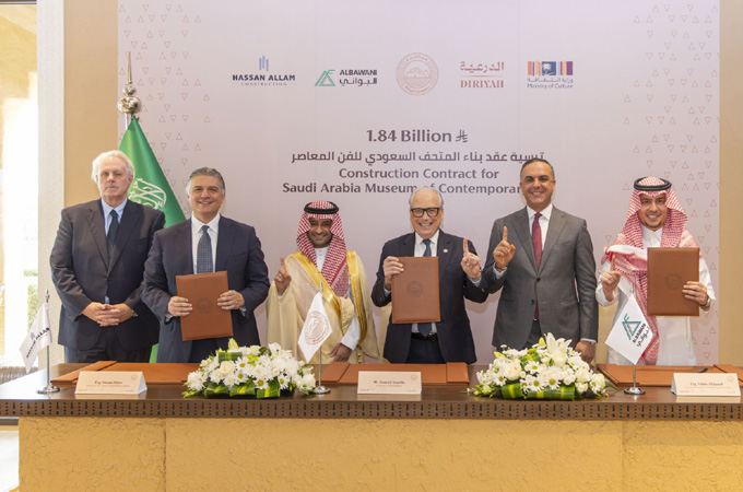 The project was officially announced at a signing ceremony attended by Jerry Inzerillo, CEO of Diriyah Company Group, Eng. Abdullah bin Abdulaziz Al-Hammad, Chief Executive Officer of the Museums Commission alongside Eng. Hassan Allam, CEO of Hassan Allam Holding, and Eng. Fakher AlShawaf, Group Chief Executive Officer of AlBawani Holding Company.
