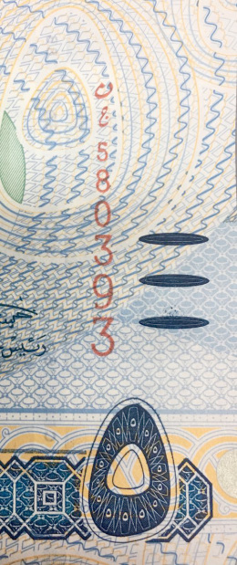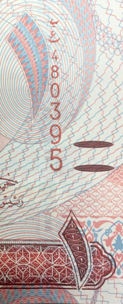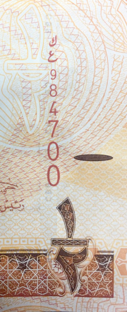 The 500 fils note has one line, BD1 has two lines and BD5 has three lines.