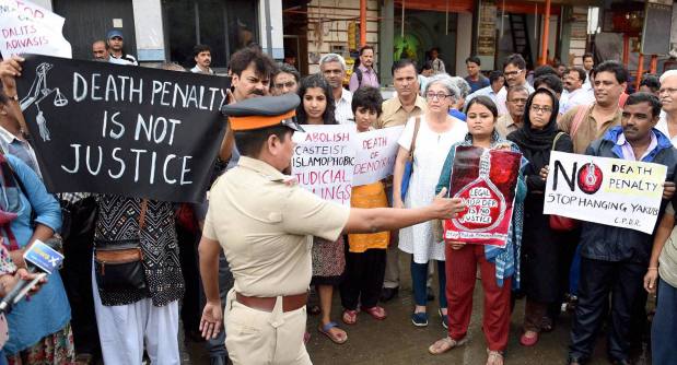 People holding a protest in support of mercy plea for 1993 Mumbai blast convict Yakub Memon in Mumbai on Tuesday.