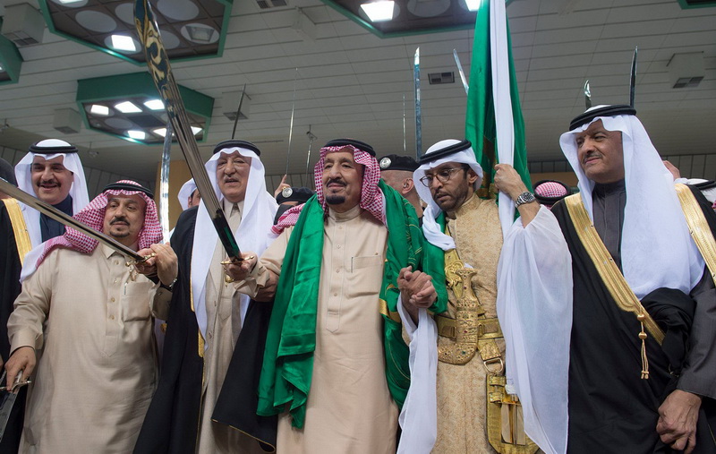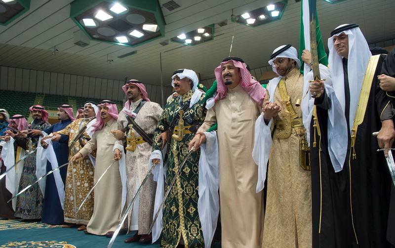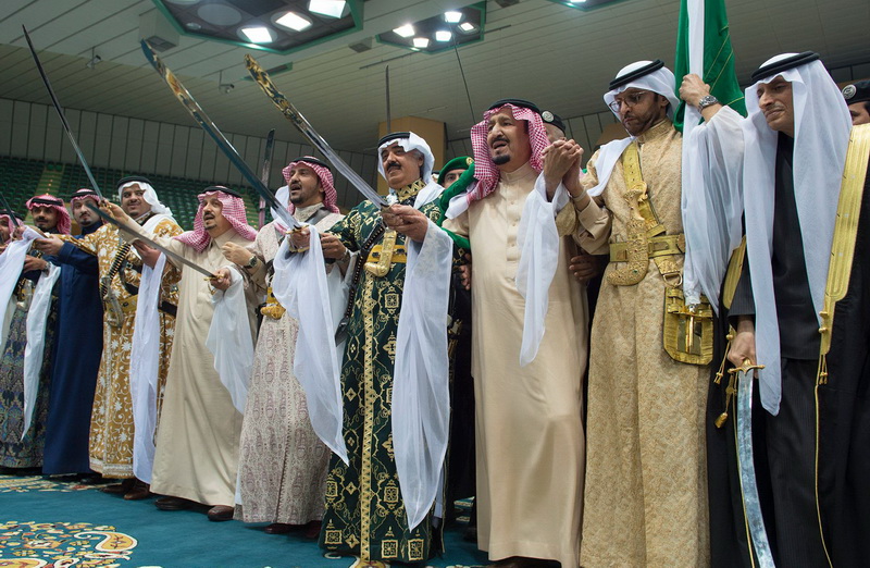 Saudi King Salman bin Abdul-Aziz Al-Saud took part in the traditional folk 'ardha' dance in Riyadh.