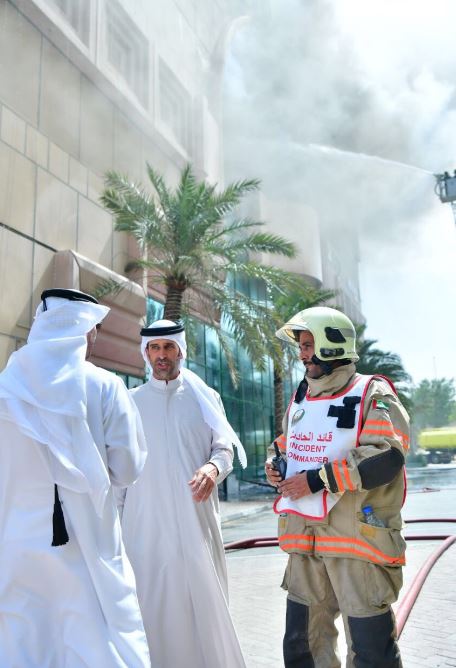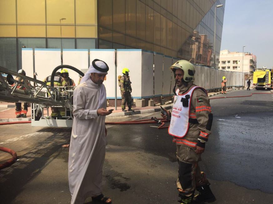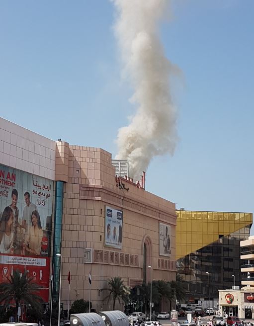 Dubai Civil Defence is working to control a fire that broke out on the roof of Lamcy Plaza Center. No injuries have been reported.
