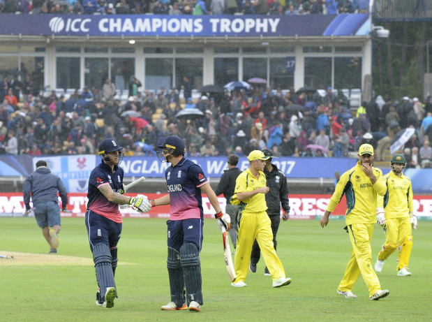Australia, whose two previous games against New Zealand and Bangladesh were rained off, scored 277-9 from 50 overs -- with Mark Wood and Adil Rashid talking four wickets apiece -- and had reduced England to 35-3 in response.