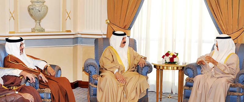 Manama: His Majesty King Hamad yesterday met His Royal Highness Prime Minister Prince Khalifa bin Salman Al Khalifa, in the presence of His Royal Highness Prince Salman bin Hamad Al Khalifa, Crown Prince, Deputy Supreme Commander and First Deputy Premier, for consultation on steps to tackle Bahrain’s financial situation and reorganise government departments by merging some ministries.