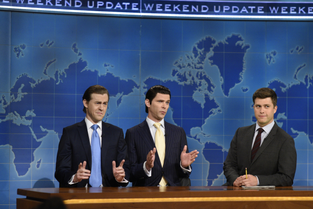The show touched on the Russia investigation with "SNL" cast members Alex Moffatt and Mikey Day reprising their roles as presidential sons Eric and Donald Trump Jr.