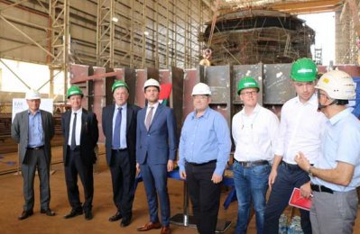 The keel was lowered onto the building blocks by Captain Brand. Following this, both Captain Brand and Captain Magee marked the occasion by breaking a coconut over the keel, it said.
