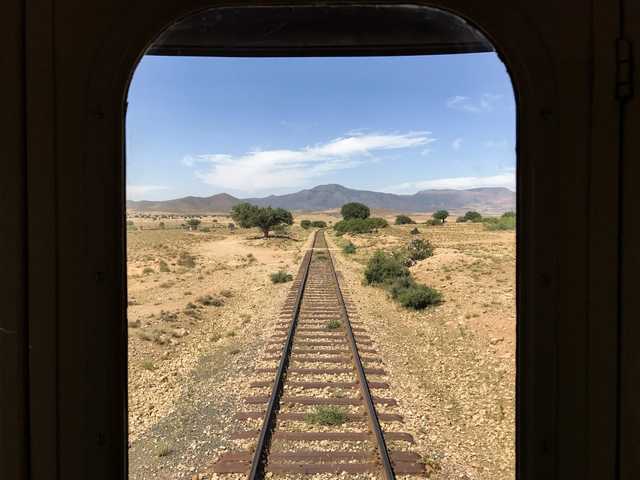 A picture taken on June 12, 2017 shows the view from the Oriental Desert Express train en route from Oujda to Bouarfa in northeastern Morocco. The track in the remote east near the border with Algeria was originally built nearly 100 years ago when Morocco was a French protectorate. The 350-kilometre journey through the desert can take between eight to twelve hours, and sometimes even more, depending on the sandstorms. (AFP Photo)