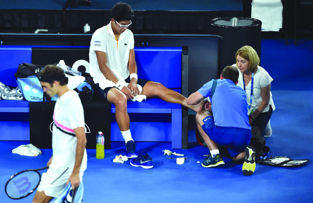 Federer broke for 3-1 with a dipping backhand pass and when Chung needed treatment on his foot blisters after losing the next game, his hopes of becoming the first South Korean to reach a Grand Slam final already looked forlorn.