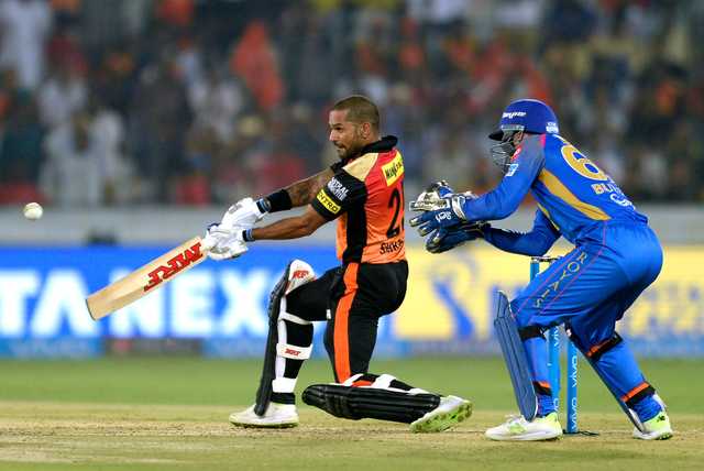 BRIEF SCORES: Sunrisers Hyderabad 127 for 1 (Dhawan 77*, Williamson 36*) beat Rajasthan Royals 125 for 9 (Samson 49, Kaul 2-17, Shakib 2-23) by nine wickets.
