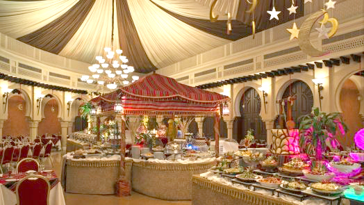Iftar dishes includes traditional Arabic cuisine, an international menu option, traditional Arabic juices corner, a huge variety of cold mezzah and starters, dates corner fit, crepe station and exciting dessert corners that guests are sure to love.