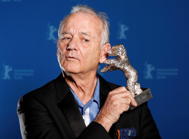 Bill Murray holds the Silver Bear for Best Director award on behalf of Wes Anderson for movie "Isle of Dogs" during the awards ceremony at the 68th Berlinale International Film Festival in Berlin, February 24, 2018. REUTERS/Axel Schmidt