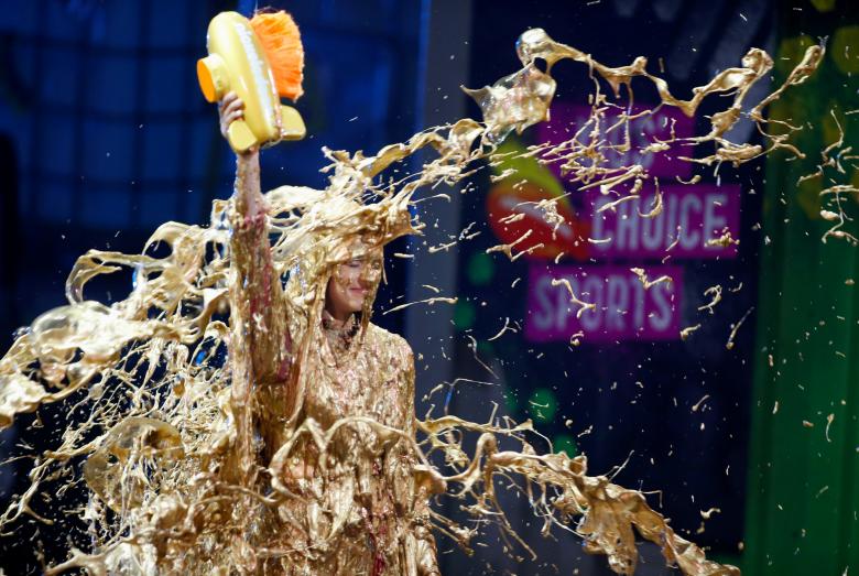 Race car driver Danica Patrick gets slimed as she accepts the Legend Award at the Kids Choice Sports Awards in Los Angeles, July, 19, 2018. REUTERS/Danny Moloshok