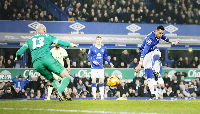 The goal gave Everton a deserved advantage to take into the second leg on Jan. 27 after they largely dominated proceedings at Goodison Park and restricted three-times winners City to infrequent counter attacks.