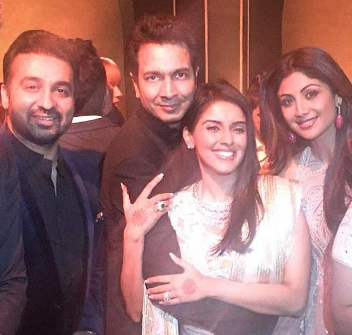The couple poses with Shilpa Shetty and her husband.