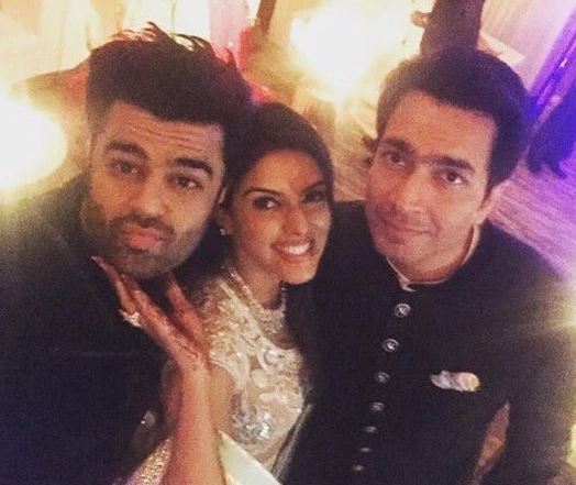 Manish Paul pouts as he takes a selfie with Asin and her husband Rahul.