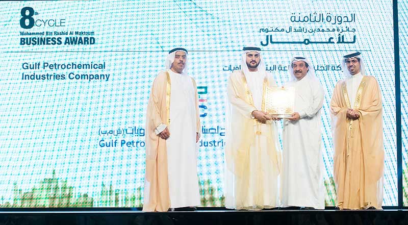 A representative of Gulf Petrochemical Industries Company received the awards from Deputy Ruler of Dubai Shaikh Maktoum bin Mohammed bin Rashid Al Maktoum, for its exceptional performance in manufacturing category of the prestigious award.