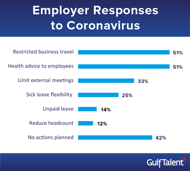 However, a significant 42pc of employers surveyed reported no plans or changes of any kind in response to the outbreak of the virus that has affected all the Gulf countries.