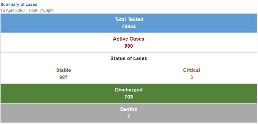 This is a drastic drop in new cases recorded in the country compared to the last three days, bringing the total number of active cases to 990 – of which three remain in critical condition.
