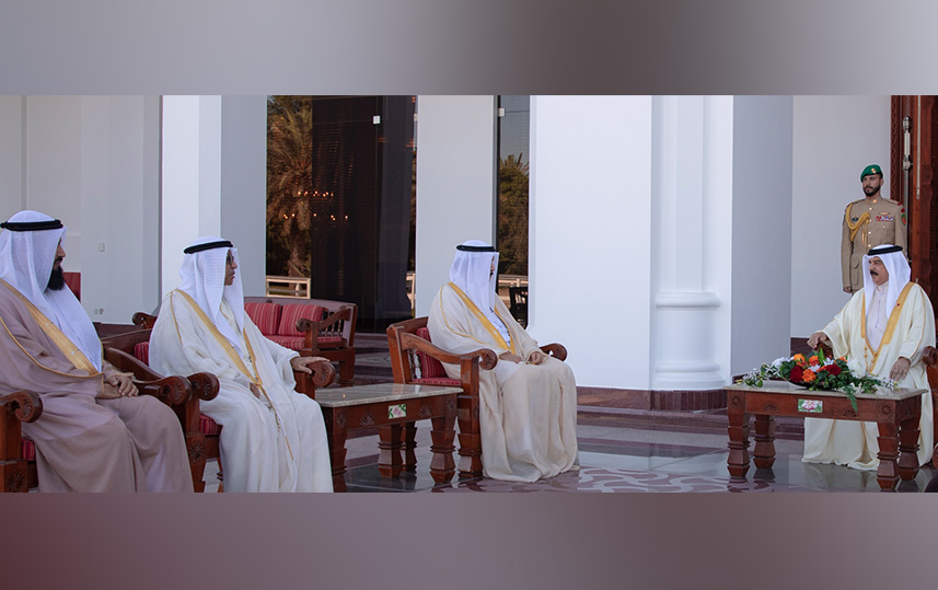 His Majesty King Hamad yesterday received at Safriya Palace, Supreme Council for Islamic Affairs president Shaikh Abdulrahman bin Mohammed Al Khalifa, Sunni Endowments Council chairman Dr Shaikh Rashid Al Hajeri and Jaffari Endowments Council chairman Youssef Al Saleh, who congratulated him on Ramadan, wishing him health and happiness and Bahrain and its people further progress, prosperity and security.