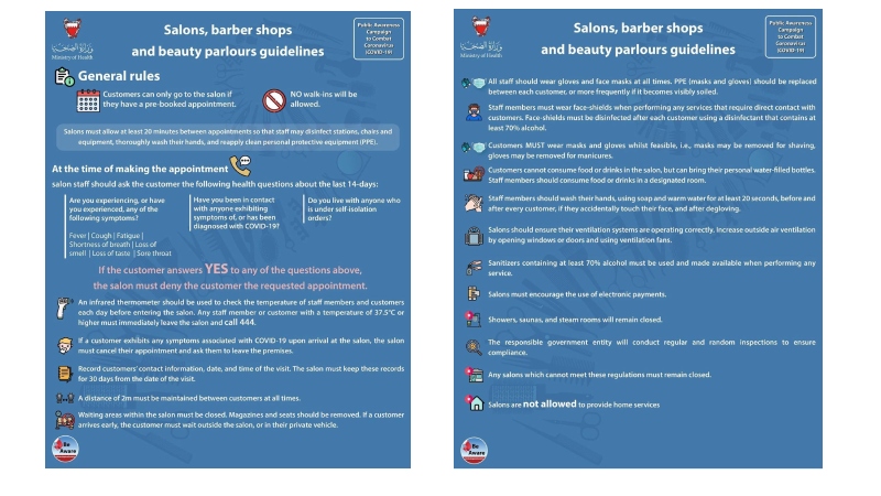 The Industry, Commerce and Tourism Ministry had previously warned salons against providing services at home or in salons behind closed doors.
