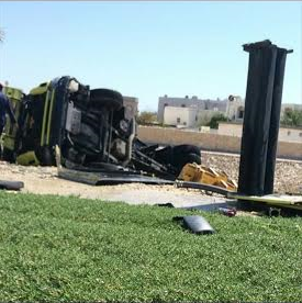 Manama: TWO Civil Defence personnel were injured as they lost control of their fire engine and crashed in Hamad Town. One sustained minor injuries while the other suffered medium injuries and both were taken to hospital .