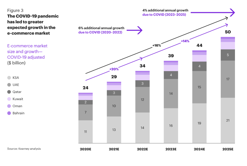 MANAMA: The GCC e-commerce market is seen doubling in size to around $50 billion by 2025, thanks to impetus from Covid-19, says a new report by management consultancy Kearney Middle East.