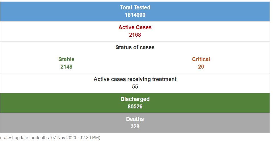 Of the 2,169 active cases, 55 were receiving treatment and 20 in critical condition.