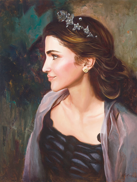 A portrait of Jordan’s Queen Rania painted by Mr Sokov