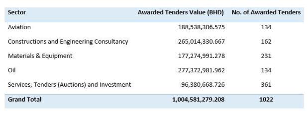 The construction and engineering sector was followed by the aviation sector, the materials and equipment sector, and finally the services sector, which saw a total of $501.3m million, $471.5m and $256.1m worth of tenders awarded respectively.