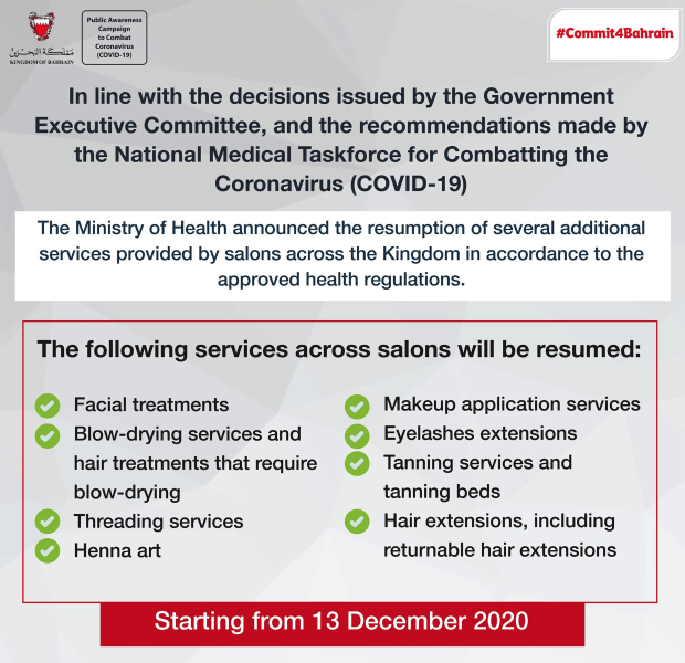 SEVERAL services that were once limited in salons in Bahrain have been given the green light to resume from Sunday.
